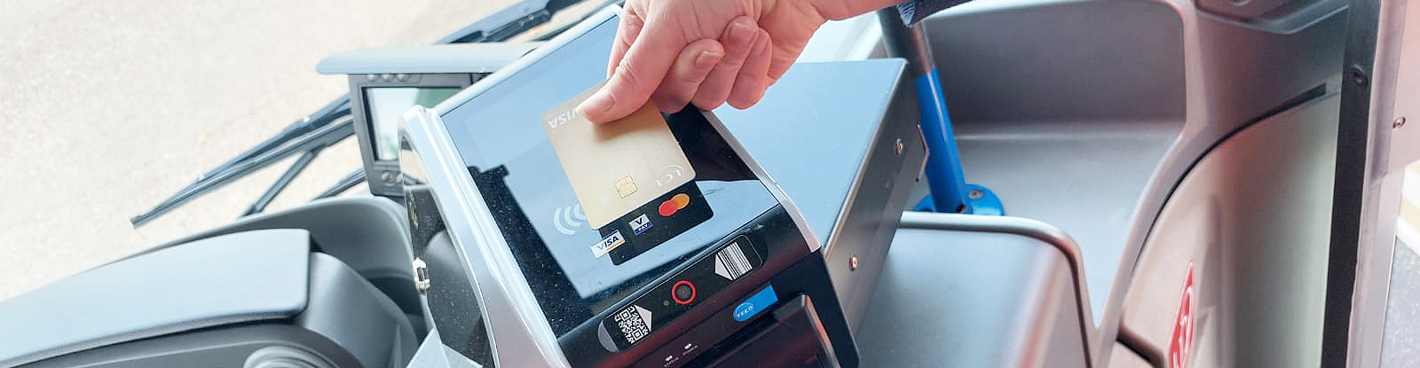 En montant dans le véhicule, il suffit de présenter directement sa carte bancaire devant la cible du boitier. Le valideur valide l’achat du titre en émettant un son positif.